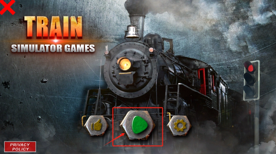 点击中间的绿色六边形按钮即可开启游戏,其余按钮可用于查看隐私政策。