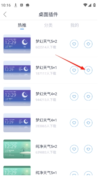 点击下欢桌面组件即可安装到桌面