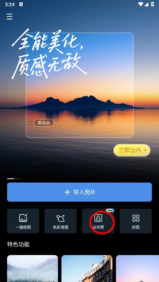 1、打开光影魔术手安卓版最新版进入首页点击证件照
