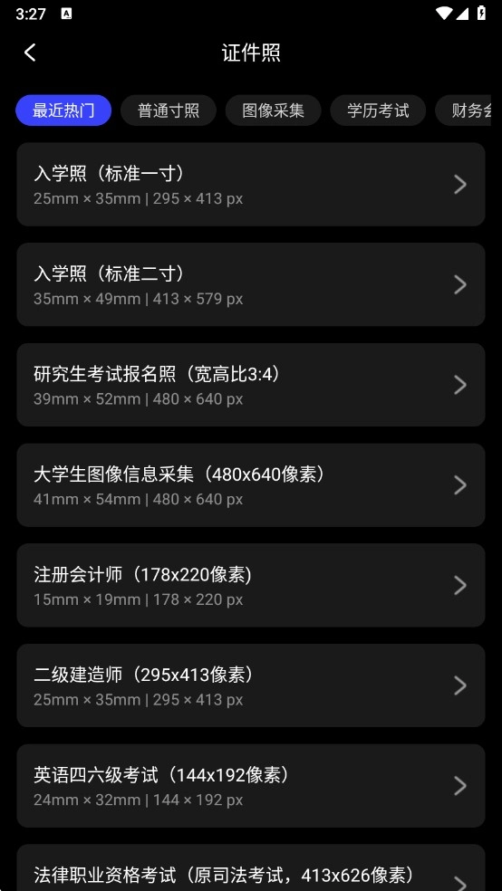 2、击进入证件照页面,按照要求选择自己对应的选项
