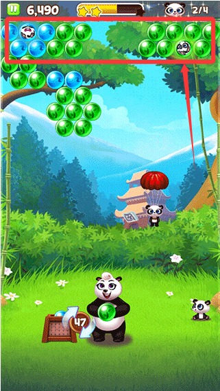 3、消除所有珠子,把被困在泡泡中的熊猫宝宝救下来即可成功通关。
