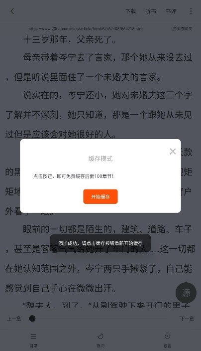 3、接着就可以缓存小说啦
