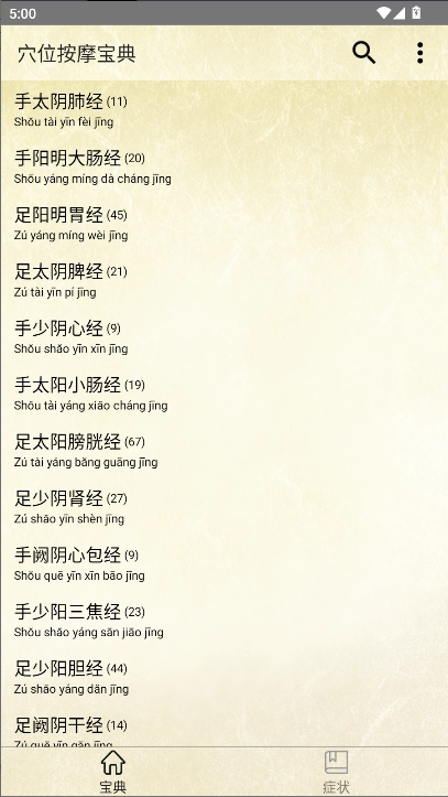 2、进入软件在宝典中可以查看所有的经络介绍。
