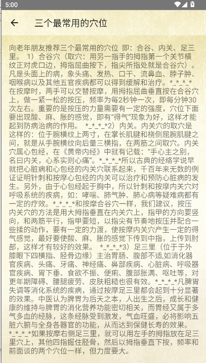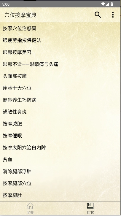 穴位图示清晰,定位精准:软件人体各穴位的详细展示,既有高清图示辅助直观了解,又有精准文字说明补充细节,助力您准确锁定穴位位置,降低操作失误风险。 常见病症解决方案:面对日常常见的健康问题,像头痛缓解、睡眠改善、疲劳消除等,《穴位按摩宝典》均配备了对应的有效穴位按摩方案。这些方案经过细致规划,致力于让您通过自我按摩的方式缓解身体不适。
