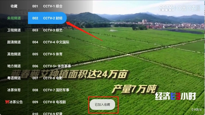 4、点击左上角的收藏栏目就可以看到收藏的电视频道了