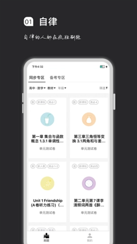 搜索功能与疯狂刷题板块面向不同用户群体提供服务,学生能够通过该平台查找课本相关的知识内容以及各类习题。