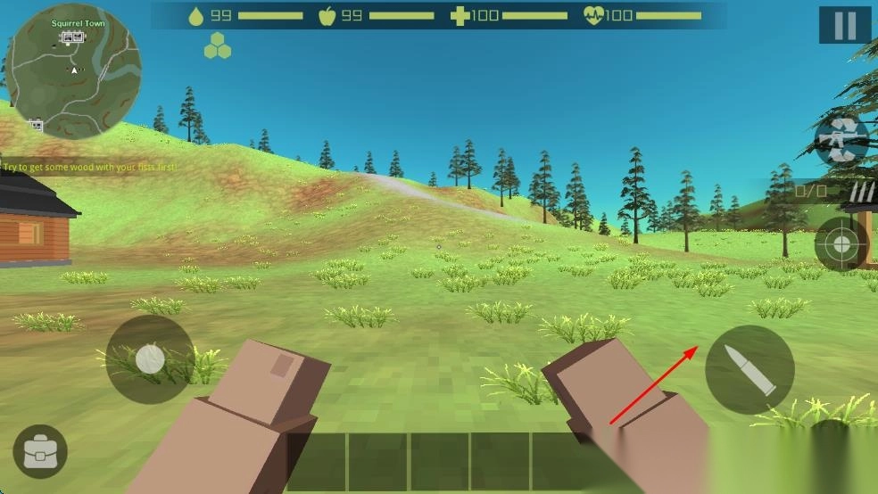 2、收集木材与石块制作斧头和工作台,砍伐树木获取建材搭建简易防御工事,在工作台合成手枪与弹药,提升远程作战能力。