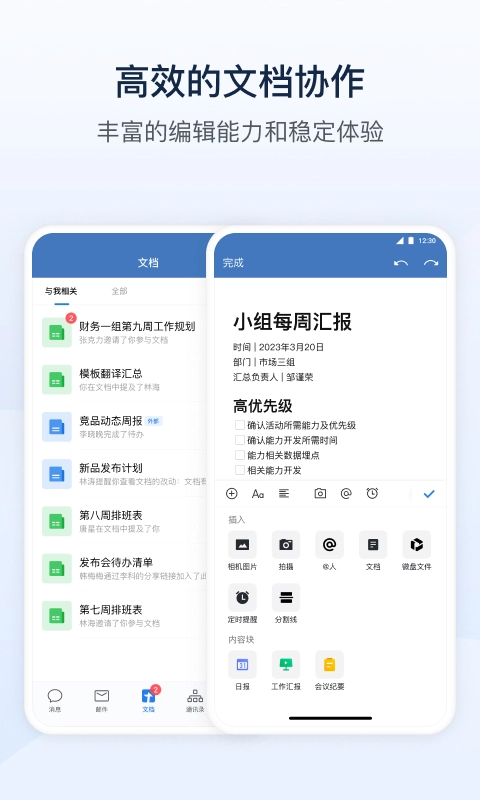 【多元协作模式】整合邮件收发系统,配备音视频会议工具,助力沟通效率升级