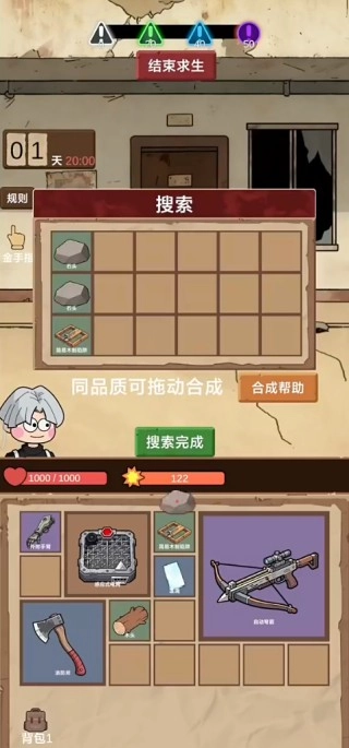 1、在游戏里收集各类物资,把它们放进背包,再进行合成以助力战斗