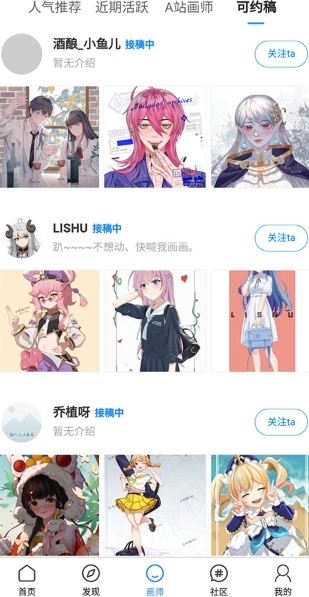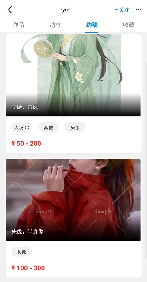 切换到【约稿】页面,并选择不同的【约稿类型】