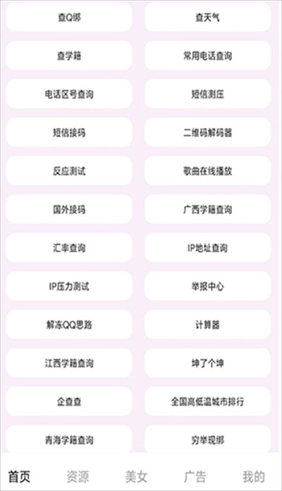 孤情工具箱是一款全能型手机助手应用,整合了众多免费实用工具供用户随心使用。无论是企业信息查询、快递追踪、QQ绑定状态查看,还是定位搜索、音乐在线播放等功能,这里一应俱全。此外,它还提供资源获取服务,能全面覆盖用户的各类需求。平台每日都会更新最新的实用工具,方便用户精准找到各类便捷软件,有需要的小伙伴们赶紧来体验使用吧。