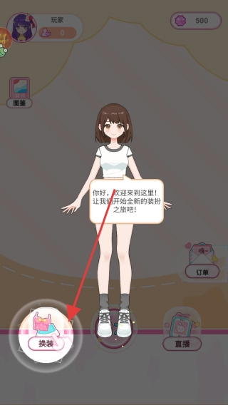 进入游戏界面后,点击开始按钮,即可开启游戏的换装挑战并进入游戏主界面。