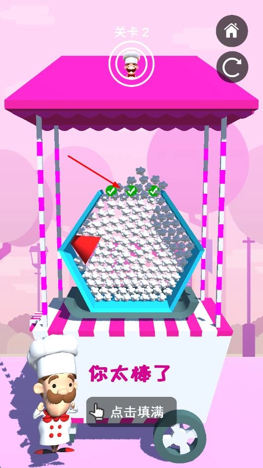 快速收集的技巧:爆米花炸开后,要立刻滑动屏幕来收集那些散落的彩色小颗粒,把它们汇聚到容器的中心位置能让收集更高效,这样就能积累到更多分数啦。
