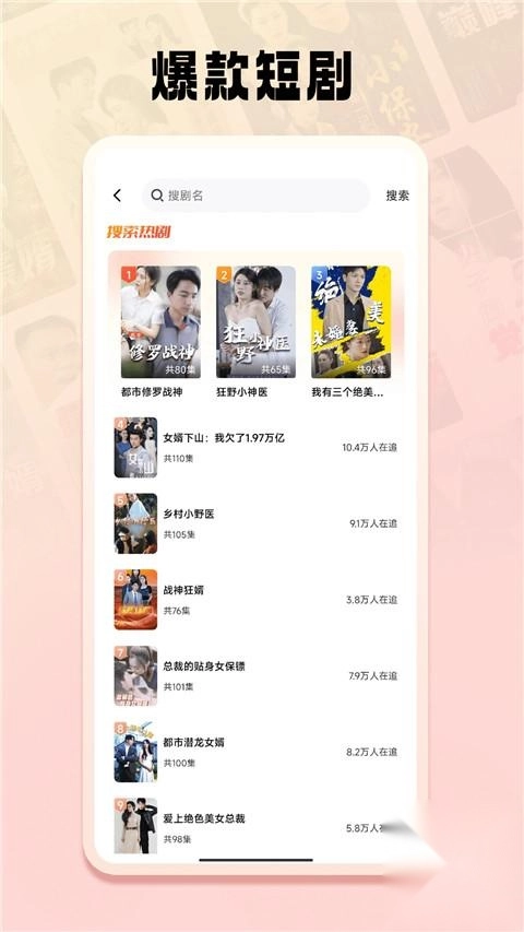 免费短剧之家是一款既实用又好看的视频播放软件。在这里,用户能轻松获取各类优质短视频资源,尽情体验丰富有趣的视频内容。软件还能帮助用户快速找到所需视频,享受全面的观看体验。所有视频均支持免费观看,让用户在轻松惬意的氛围中,完整享受观看视频的乐趣。快来试试吧!