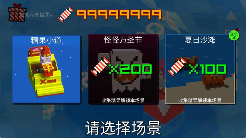 选择模式:包含糖果小道、怪怪万圣节、夏日沙滩等多种不同的模式,每种模式都有着独特的场景与氛围。