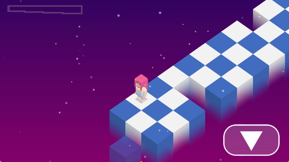 点击屏幕左侧或右侧区域,角色便会在颜色相同的方块上朝着斜前方移动。