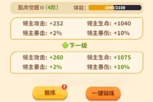 大家都知道现实中健身能增强身体素质,这一点在游戏里同样成立哦~在《植物萌斗》里,你可以让领主通过锻炼来提升体魄,进而增强战斗力。游戏里的锻炼肯定比现实轻松多啦,萌萌还贴心地准备了锻炼按钮,帮助领主大人轻松实现“无痛健身”!