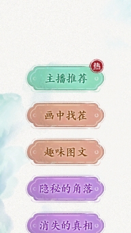 1、玩家进入游戏时一般是有五大分类的,如下图所示包括新关出炉(主播推荐)、画中找茬等