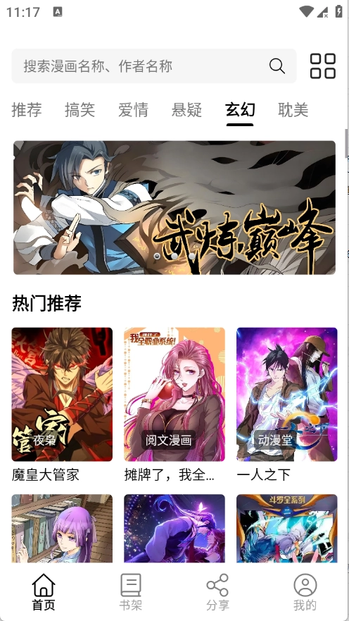 2、来到首页为用户推荐了当前热门的漫画资源。