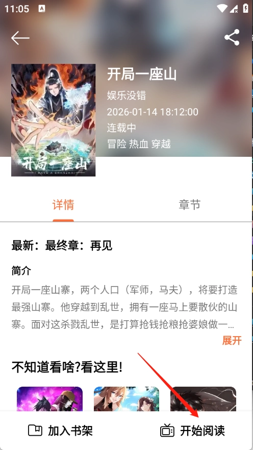 5、点开想看的漫画进入详情页点击“开始阅读”。