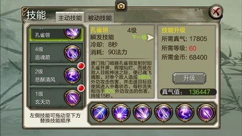 流云矢:对单个敌人造成较高伤害。唐门瞬发技能,输出比普攻伤害高。打架时其他技能冷却时使用增加伤害。