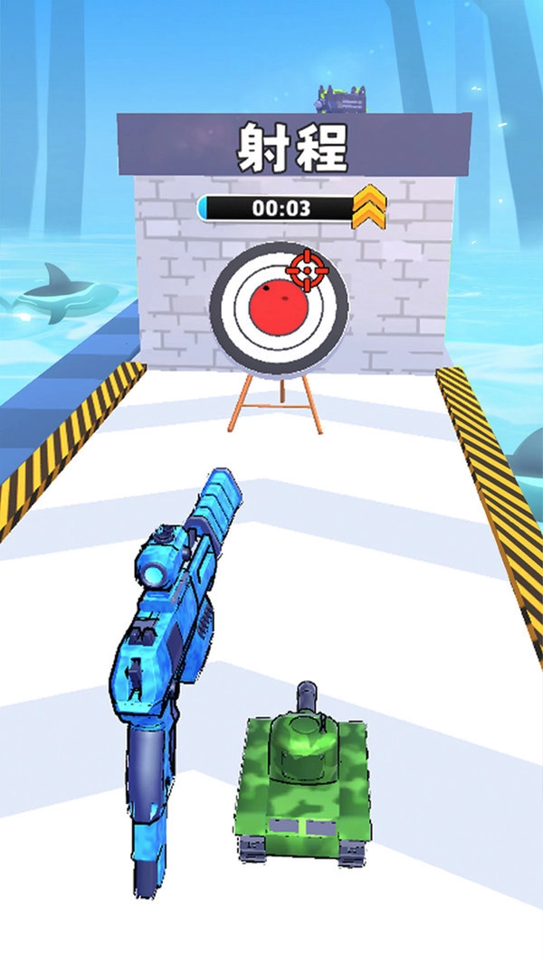 不同的枪械各自存在最佳的射击距离,赛道上会清晰标注出距离刻度,玩家需要依据这些刻度来调整自己的射击时机,以此保证能实现伤害的最大化。