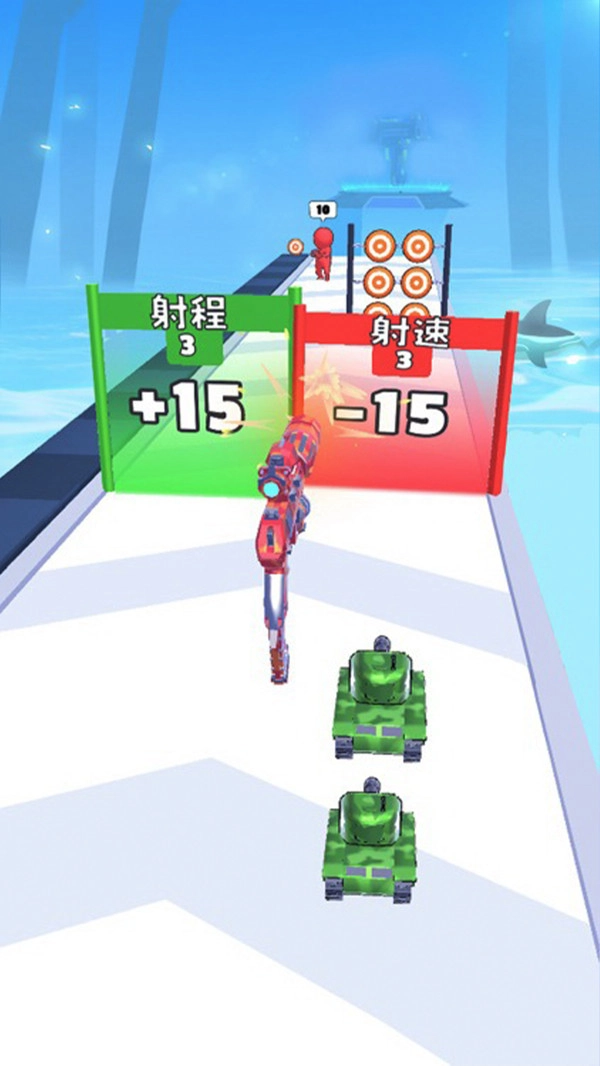 到达终点即可获取相应奖励,武器等级会带来额外奖励,玩家需在跑酷过程中及时升级武器。