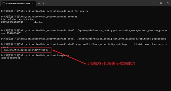 第四步,双击打开已解压好的(hlx_activation.zip)压缩包中的对应文件,待弹出的命令运行界面显示图示代码,即代表激活成功。