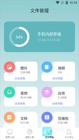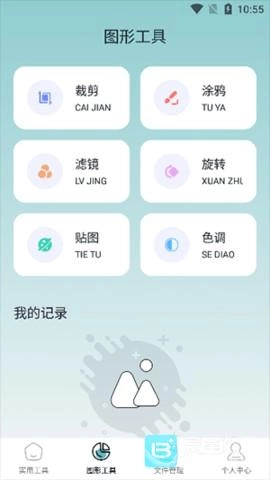 打开软件可看到许多实用工具,点击所需工具即可使用,软件还设有多种图形工具供用户使用,且能够快速对手机内的各种文件进行管理。
