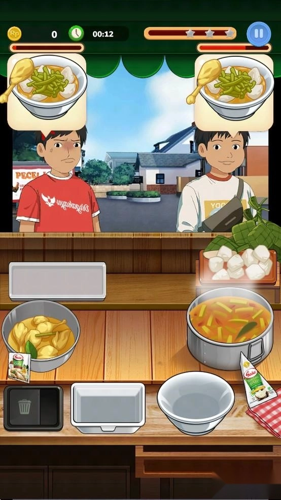 2、这里会有不少顾客前来,你要根据他们的需求制作鸡肉粥并进行售卖。