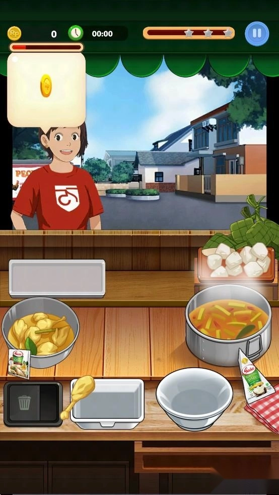 玩家进入游戏后解锁不同关卡场景售卖鸡肉粥,按顾客需求制作并售卖,还可扩大经营范围、购买店铺、增加外送功能,游戏采用动漫卡通画面、生动角色和精致界面。