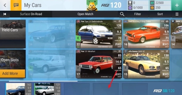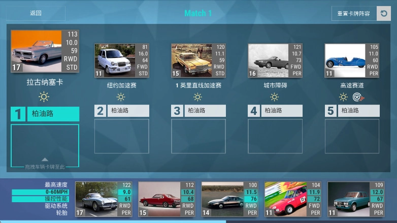进入游戏后,得从自己的车库里挑选车辆来组建赛车小队。