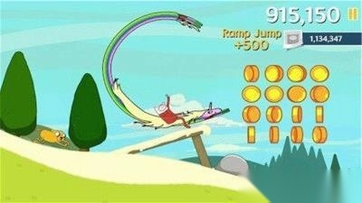 1、控制角色滑行:需在陡峭山坡上控制角色滑行,躲避障碍物,收集道具与金币。