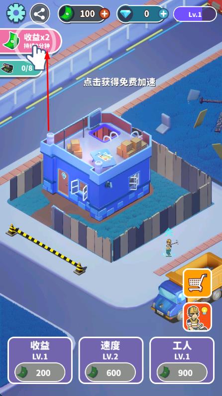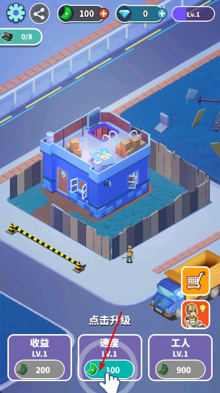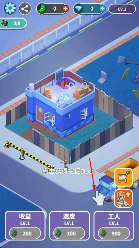 1进入游戏后,选择起始的拆迁区域,点击房屋来指定拆除的位置,然后派遣基础工人开始第一次拆迁工作。