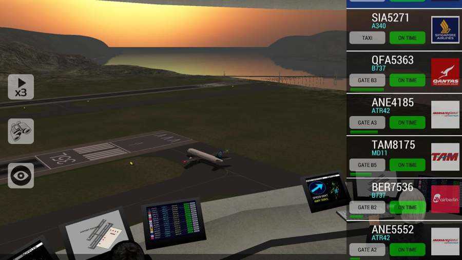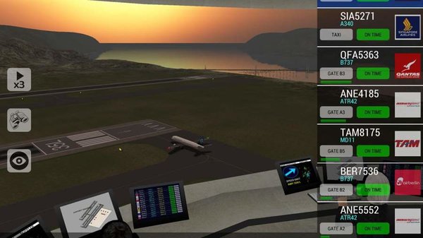 右边是你的飞机的状态,需要降落和需要起飞的都会自动排在上面,你最好时常关注一下这里;