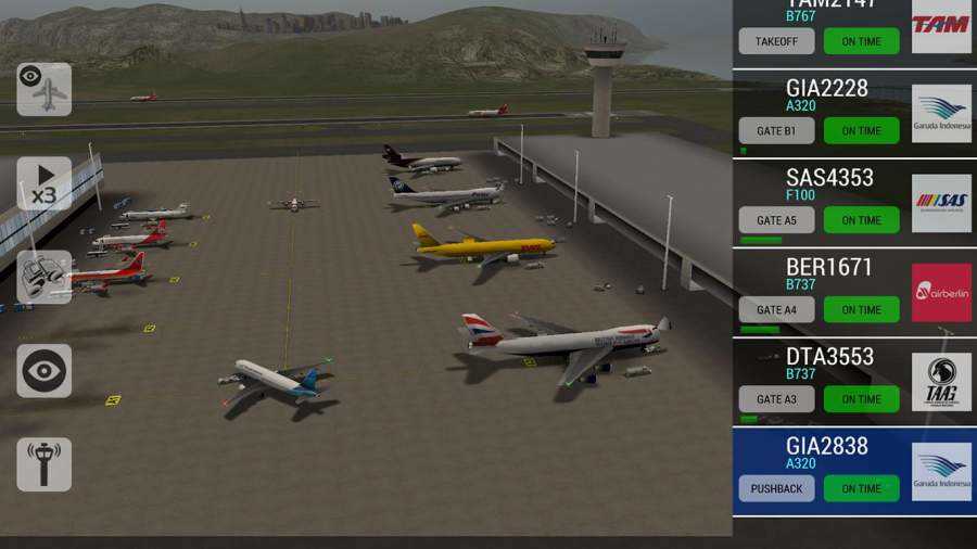 游戏也是较为人性化,并不像ATC那样那么考验地上滑行能力。当飞机着陆后将会从任意一个脱离口脱离,然后滑往停机坪的联络道,