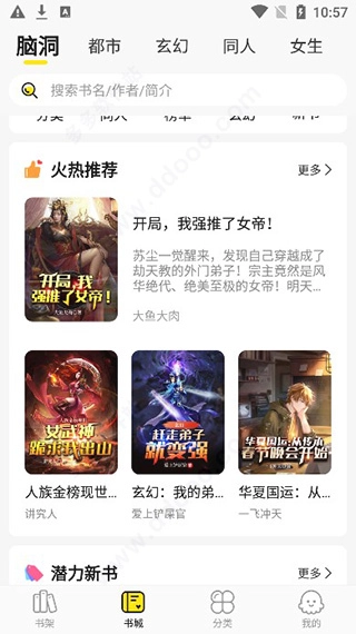 玄幻、都市、言情、武侠、科幻、军事、职场励志等各类题材,这里一应俱全。