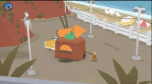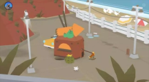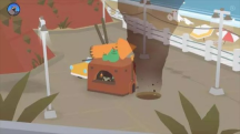 7、大鸟旁边的篮子里装着玉米、还有一个火堆。掉下来以后一起吃掉,地洞就又会爆出很多的爆米花。