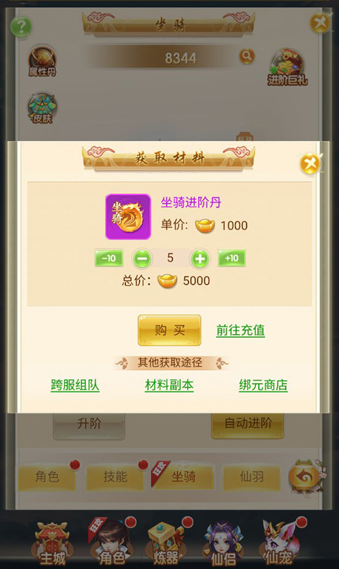 2、玩家也能够对坐骑开展升级进阶操作,通过使用坐骑进阶丹来达成进阶。