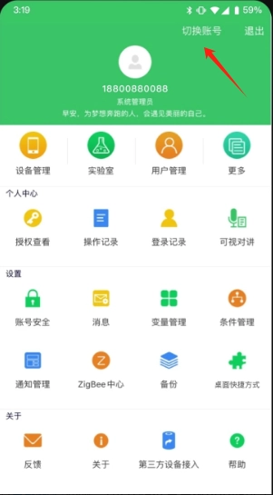 点击切换账号后,我们就能开展设备管理、用户管理之类的操作了。
