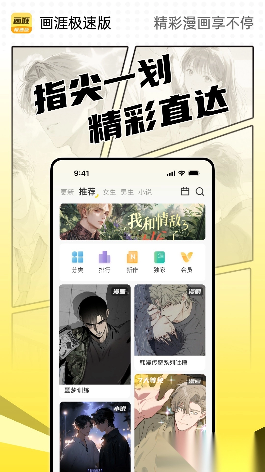 画涯极速版是一款汇聚海量漫画资源的阅读应用,内容分类清晰且实时更新,支持离线缓存功能,让用户在无网络环境下也能轻松观看。此外,应用还设有排行榜和小说板块,力求为用户打造丰富优质的阅读体验,助您随时开启轻松愉悦的数字阅读时光。