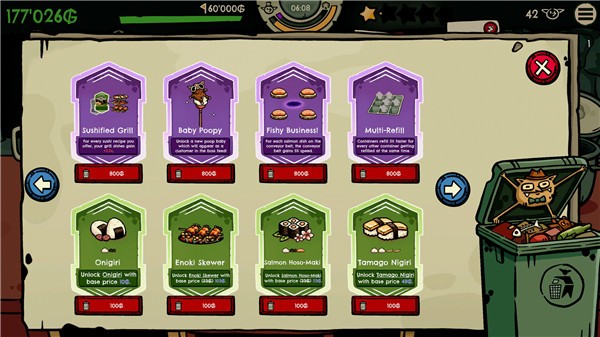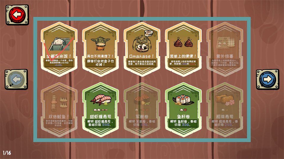 紫色牌,海台搭米饭 每添加一个海苔,寿司售价获得以下增益:(+0.03x)+0.06x乘以米饭容器中剩余米饭数