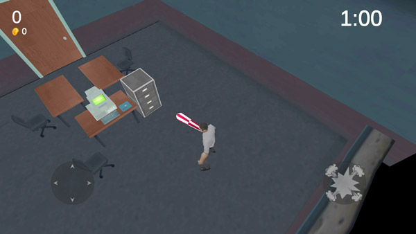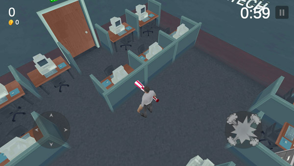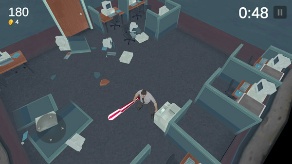 游戏玩法操作也非常简单容易,玩家可以操纵角色自由移动,前往不同房间探索破坏,感受解压的瞬间。期间随着游戏进程的向前,还有许多障碍的呈现,而每次完成挑战游戏将根据你的场内表现进行打分,还可以获得金币奖励,你可以使用金币兑换各种武器、时装等。不同武器攻击力、攻击速度等属性都有不同,选个趁手的武器,肆意破坏,砸烂这间办公室!