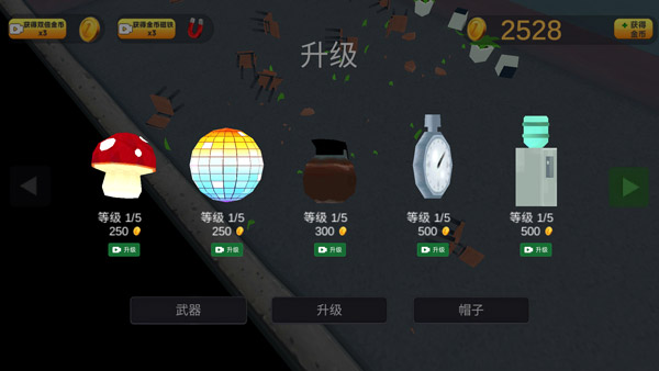 2、点击升级页能够看到多种道具,玩家可以自由选择进行升级,为关卡内挑战增加更多好处!