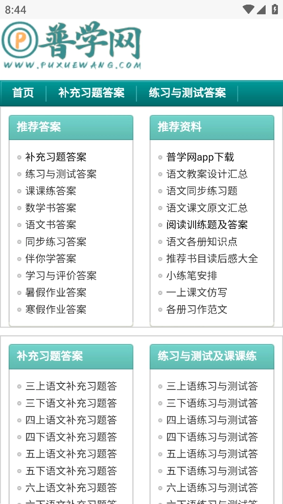 打开普学网后,你可以在首页直接选择想要查找的教材,也能通过分类导航的方式找到目标教材。