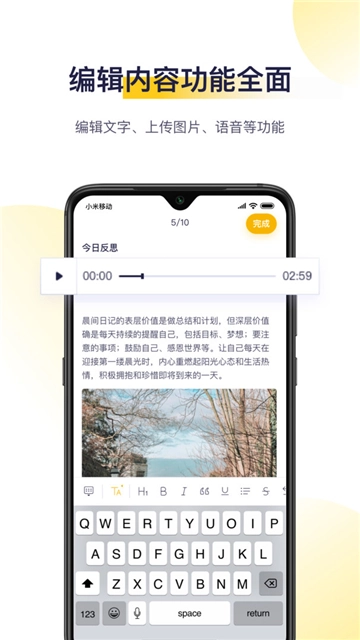 • 升级款富文本:简洁实用且功能强大,支持无限制添加照片与录音。