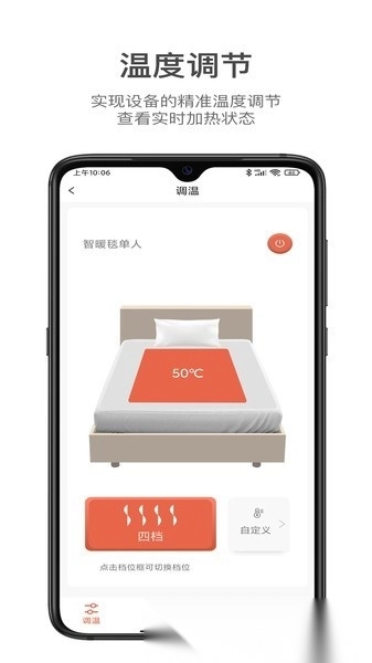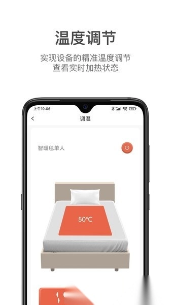 这款应用是专门为智能电热毯开发的,使用者通过连接设备,就能便捷地调节温度、设置关机时间以及开启除螨功能,进而体验到更智能、更舒适、更健康的睡眠。