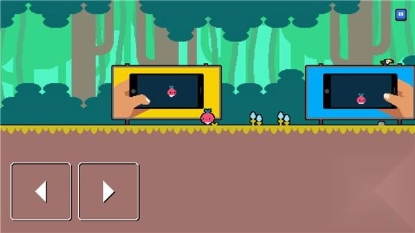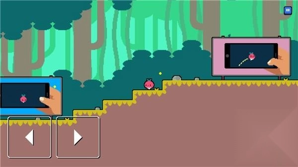 左下角的按钮分别为左右方向键,右侧屏幕区域则是跳跃键。