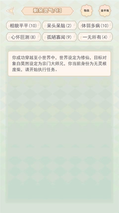 别人拥有的金手指,你也得安排上!在随机触发的情节里,你的金手指说不定会带来意想不到的效果,快来解锁专属于你的爽文体验吧~