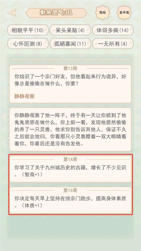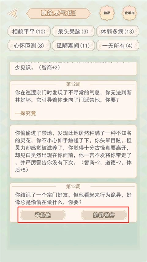 选择完随机情节之后,会出现相应的属性加成或减少;